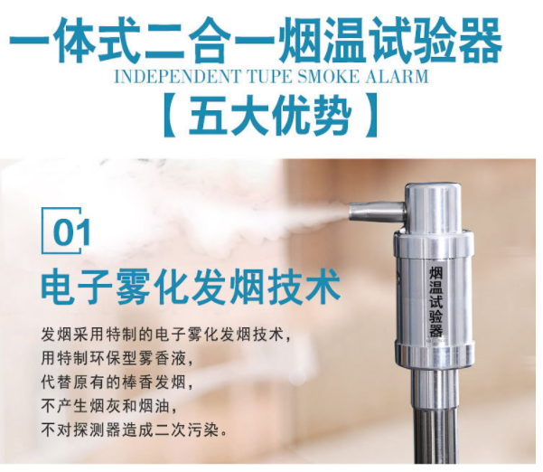 1、發(fā)煙采用特制的電子霧化發(fā)煙技術(shù),用特制環(huán)保型霧香液,代替原有的棒香發(fā)煙,不產(chǎn)生煙灰和煙油,不對(duì)探測(cè)器造成二次污染。