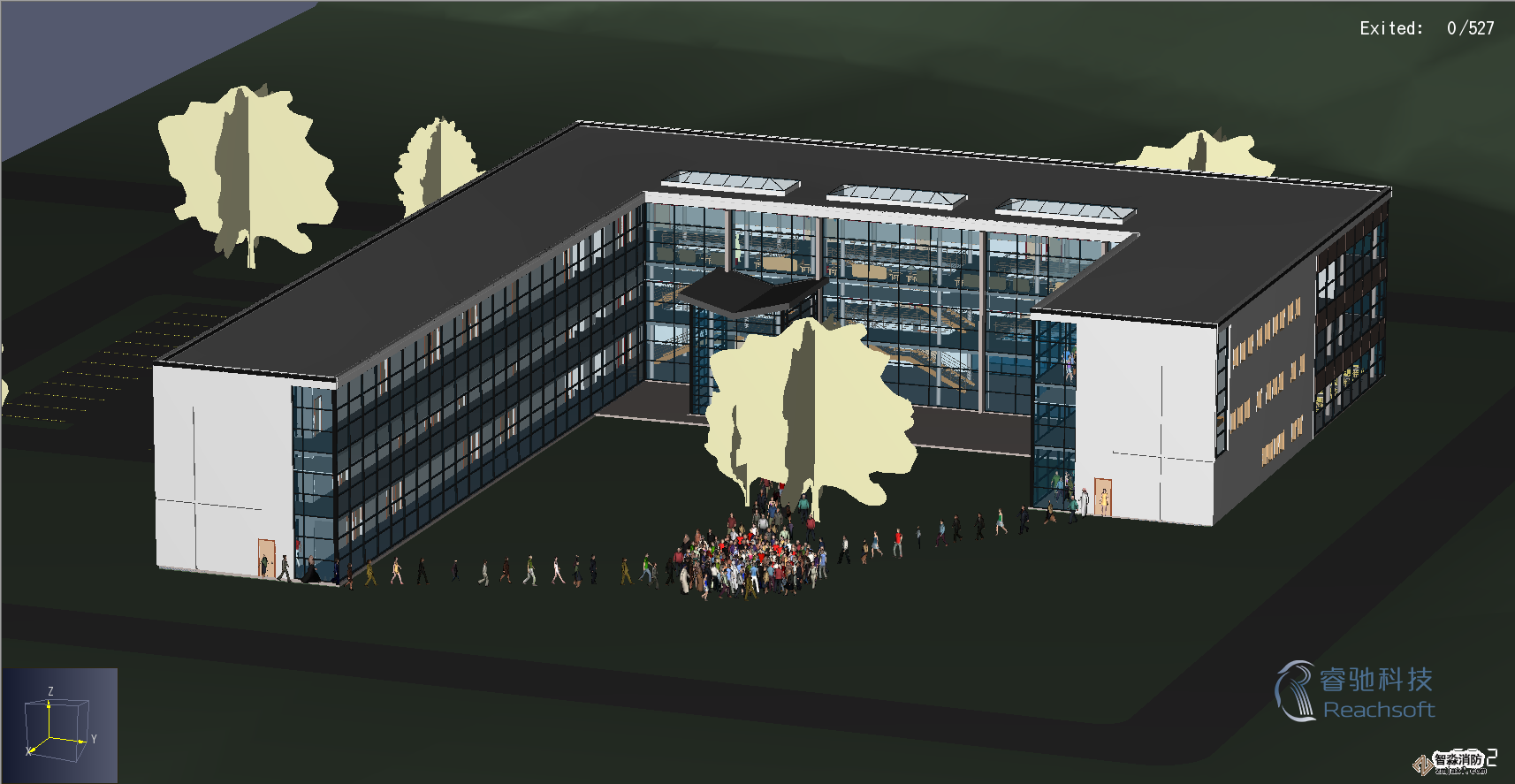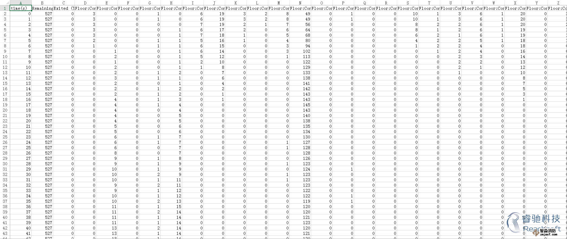 -除了3D模擬視圖,Pathfinder還提供了2D時(shí)間關(guān)系曲線(xiàn)圖的CSV文件和記錄樓層疏散時(shí)間和出入口流通率的文本文件。