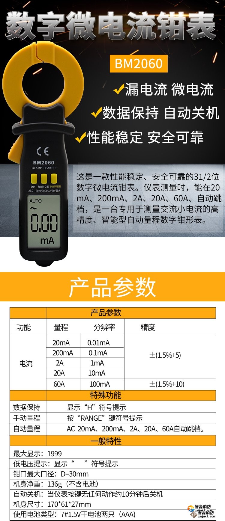 20mA/200mA/2A/20A ±1.5%±5,60A±1.5%±8