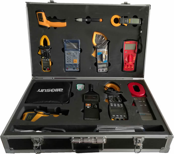 配置:1.接地電阻測(cè)試儀2.絕緣電阻測(cè)量?jī)x3.鉗型電流表4.數(shù)字萬(wàn)用表5.筆式測(cè)試儀6.高溫紅外測(cè)溫儀7.電源插頭測(cè)試儀8.漏電電流表